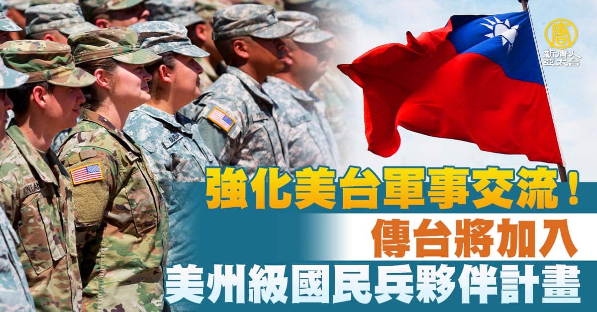 【新唐人亞太台 2022 年 01 月 03 日訊】接著來看到,有消息傳出,美國建議將台灣加入美國州級國民兵夥伴計畫,讓台灣參與聯合軍事訓練。另外,為了深化台美退伍軍人交流合作,國軍退除役官兵輔導委員會選派陸軍退役少將倪邦臣、海軍退役上校程國峰駐美,兩人已經在今天下午啟程。