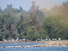 鳥友許勇為也說,走過左邊的木棧道,來到一處蘆葦花初開的岸際,遠處沙洲眾多水鳥正在享受冬陽的溫暖,黑面琵鷺、白面琵鷺、蒼鷺、大白鷺、花嘴鴨、鸕鶿錯落其中;天空偶爾一隻魚鷹劃過藍空;再往回走時,有些乾旱的池塘上空響起斑翡翠的鳴唱聲。這些美好的畫面,是新的一年最好的禮物。