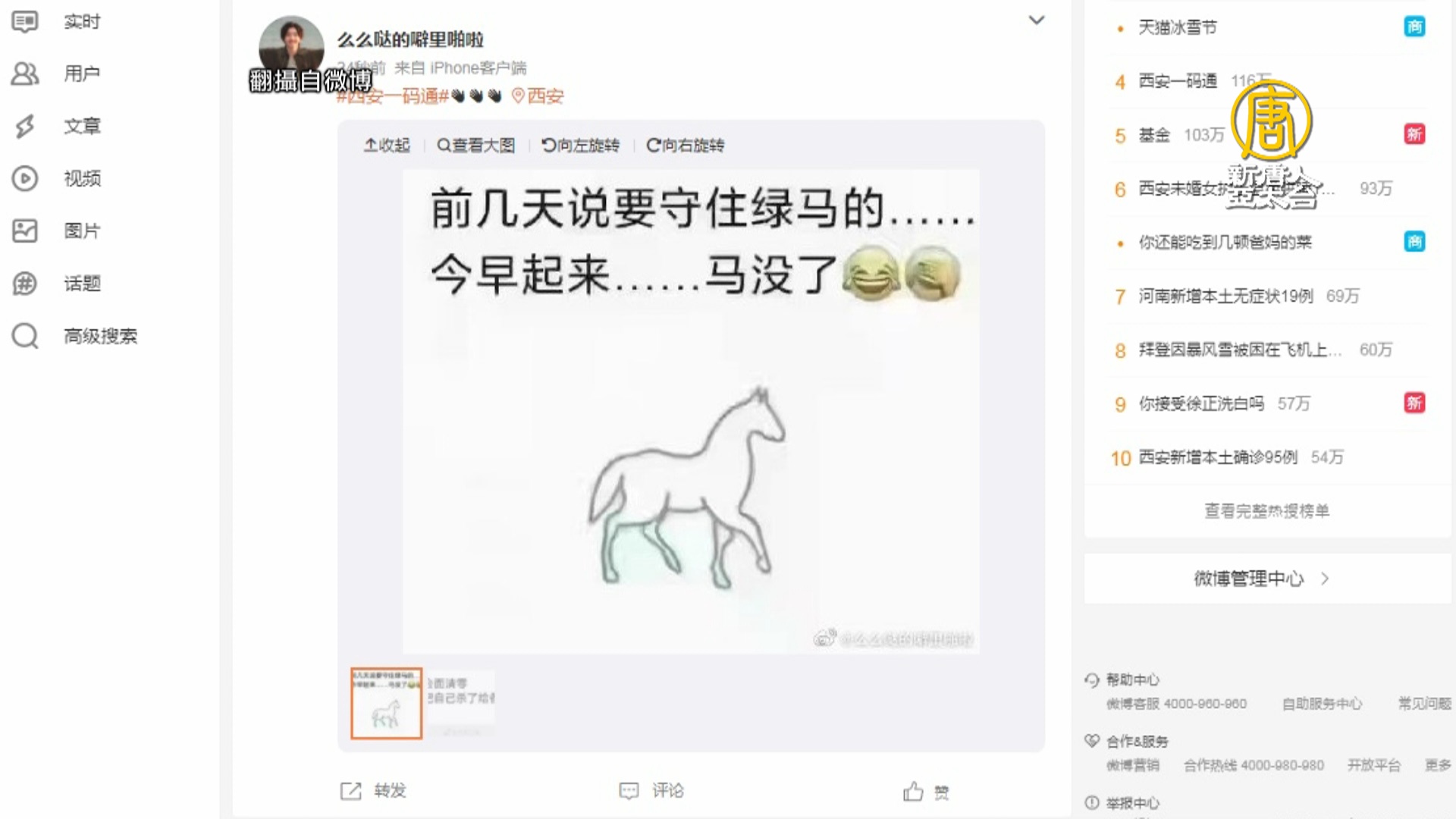 【新唐人亞太台 2022 年 01 月 04 日訊】西安疫情升溫,中共當局去年12月23日下令封城,今天進入封城第13天,網傳的一份中共內部文件,要求西安「1月4日必須實現社會面清零的目標」。4日一早,西安的一碼通系統出現大故障,核酸檢測做不了,網友諷刺「本來是社會面清零,結果成了技術性清零」,原本要守住「綠碼」,現在連碼都沒有了。這是西安半個月內,第二次出現一碼通、核酸檢測系統癱瘓。
