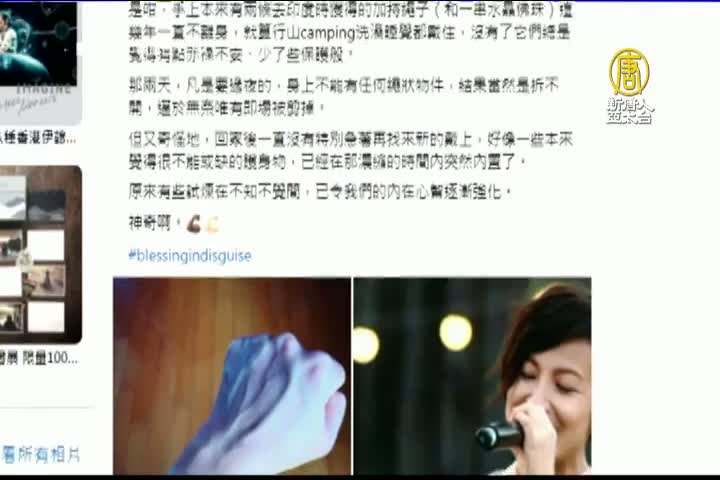 【新唐人亞太台 2022 年 01 月 04 日訊】香港歌手何韻詩被捕獲釋後,1月2日照常舉行線上演唱會,她特別選了恩師梅艷芳的經典作品「夕陽之歌」當壓軸,因為梅艷芳曾和她說過,即使在最困難和惡劣的時候,還是要盡最後一口氣把歌曲唱完。而她也在隔天PO文提到,手腕上多了一個「反白紋身」,這是她爬山、睡覺都不離身的繩環和佛珠,但在香港警署過夜時,無奈被剪掉,並留下了痕跡。何韻詩有感而發,「好像一些本來覺得不可或缺的護身物,已經在那濃縮的時間內突然內置了。原來有些試煉在不知不覺間,已讓我們的內在心智逐漸強化。」對此,網友也紛紛表示,在我的眼中,妳就是香港的護身符。一定要保重自己。為何韻詩加油打氣。