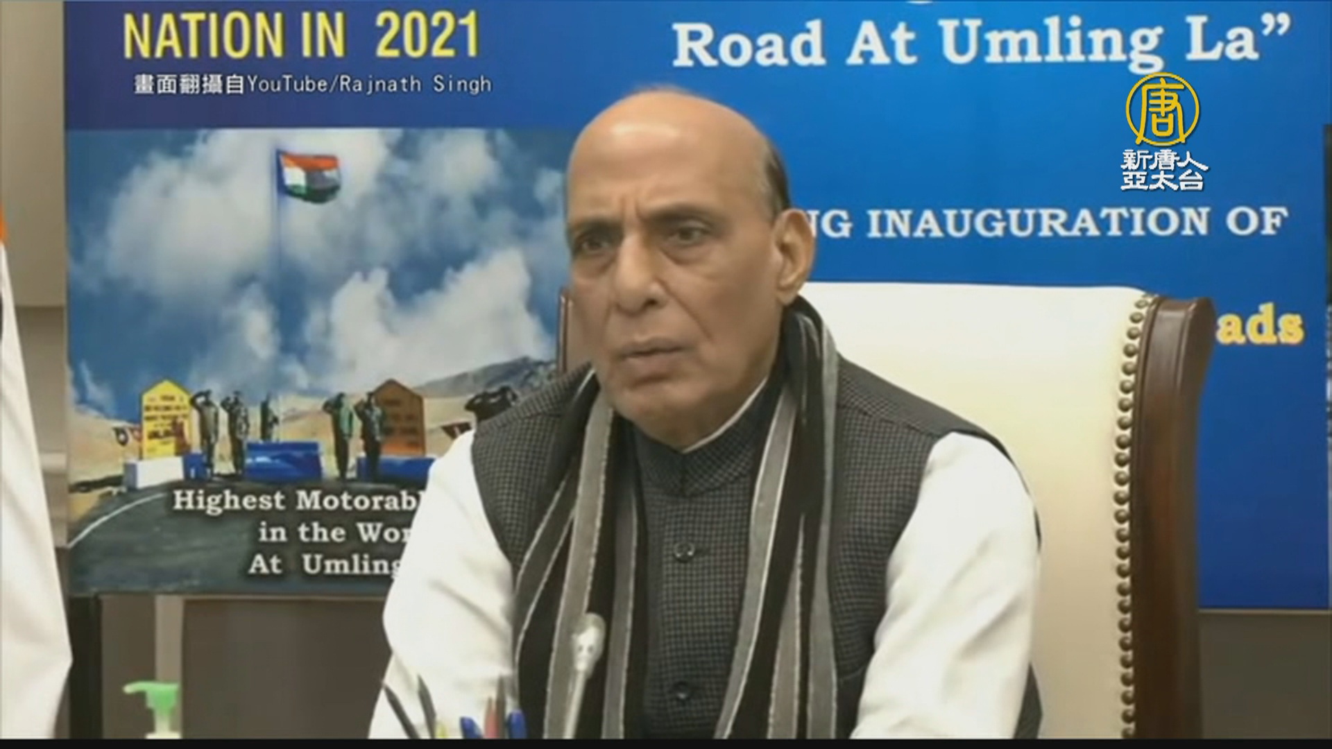 【新唐人亞太台 2022 年 01 月 04 日訊】帶您關心印中局勢,上個月28日,印度防長辛格參加了邊境道路組織(BRO)修建27個基建項目的落成典禮,共耗資2,245億盧比,約合30億美元。在3條新建公路中,其中一條位於拉達克南部、中印邊界西段地區的公路(Chisumle-Demchok Road)。辛格表示,這條公路為「獻給國家的最重要的公路之一」,典禮上他也提到,在當今環境下,不排除發生衝突的可能,邊境基礎設施的發展將提高印度應對安全挑戰的能力。印度《歐亞時報》網站報導,印度陸軍正計劃在印中邊境實際控制線沿線增強火力、加強防禦;報導用「核盾牌」來形容這一防禦設施。