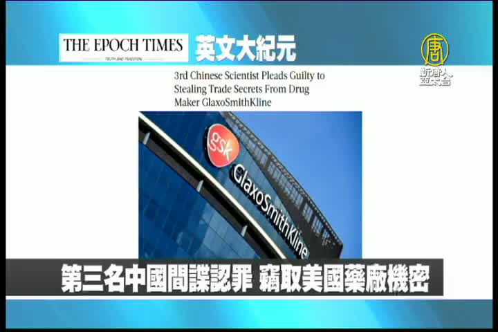 【新唐人亞太台 2022 年 01 月 05 日訊】首先來看到美國大紀元英文版報導:美國司法部週一公告,第三名中國科學家認罪,承認從藥品製造商葛蘭素史克(GlaxoSmithKline))竊取商業機密。
