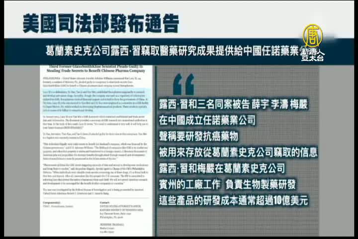 【新唐人亞太台 2022 年 01 月 05 日訊】週一,美國司法部發布通告,葛蘭素史克公司的一名前華裔研究員,承認竊取該公司的醫藥研究成果,提供給中國的任諾藥業公司。