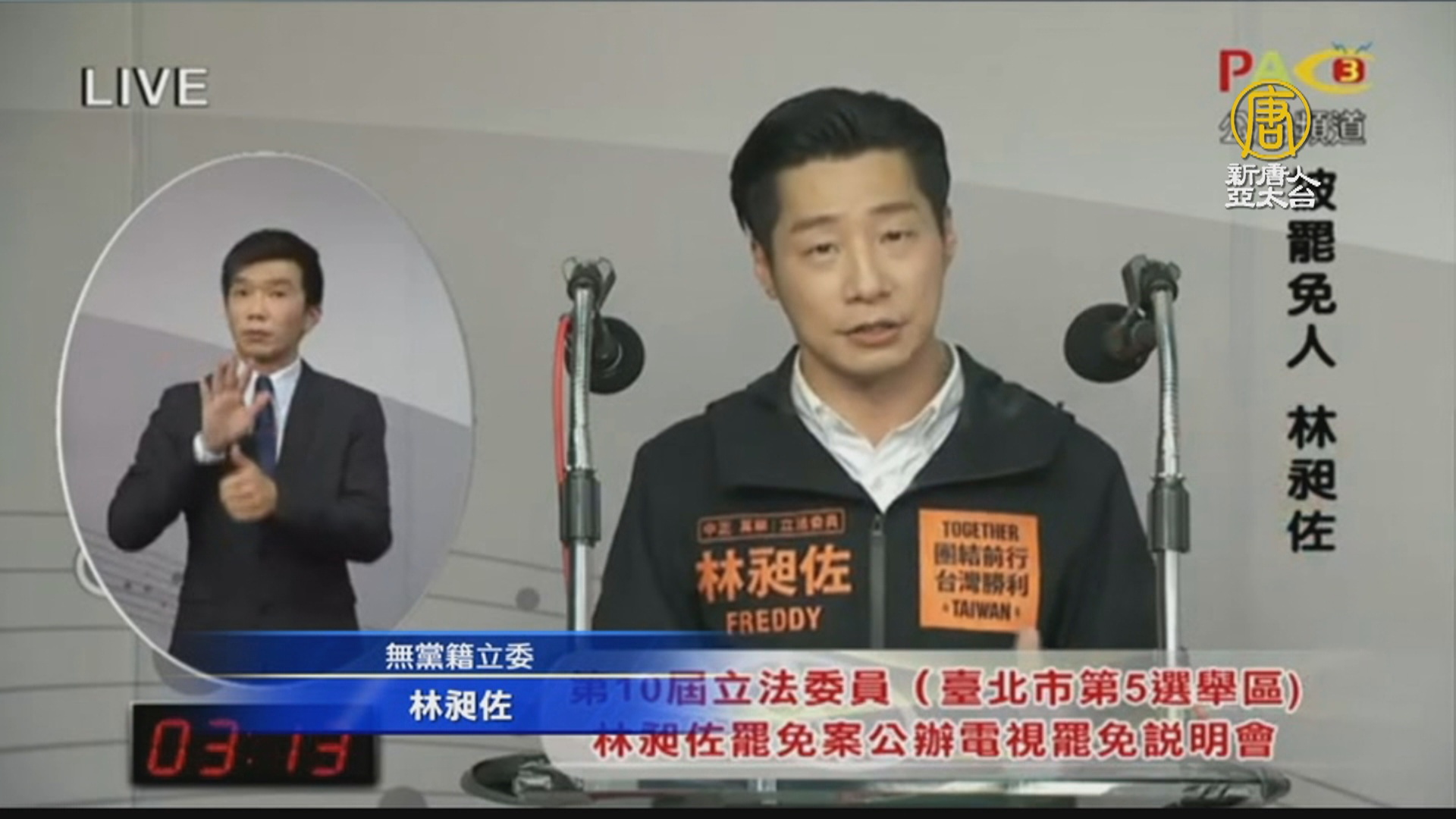 【新唐人亞太台 2022 年 01 月 05 日訊】再來看到,林昶佐罷免案週日投票,電視說明會在週三(5日)晚間舉辦,由領銜人與被罷免人進行說明。罷免方代表砲火猛烈,質疑林昶佐沒有為萬華區洗刷汙名,疫情期間也沒有為民眾發聲。林昶佐則替自己澄清,包括就任以來為地方爭取建設,並且在疫情時,緊急協調救護車等資源,呼籲選民理性投下反對罷免票。
