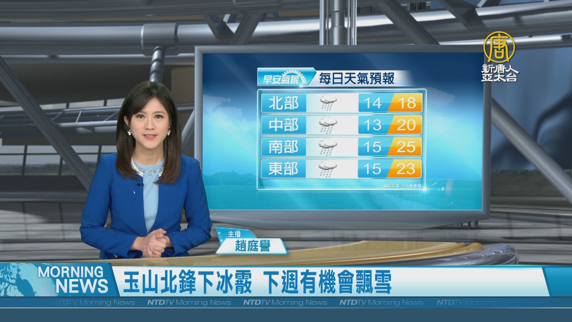 【新唐人亞太台 2022 年 01 月 07 日訊】歡迎您收看1月7日的早安新唐人,我是趙庭譽,先來帶您關心天氣。受東北季風影響,一直到星期天(九日)都是氣溫偏低的天氣;另外,玉山北峰昨晚降下冰霰,氣象局長鄭明典表示,10日有機會飄雪。帶您一起來看到國際媒體重要訊息。