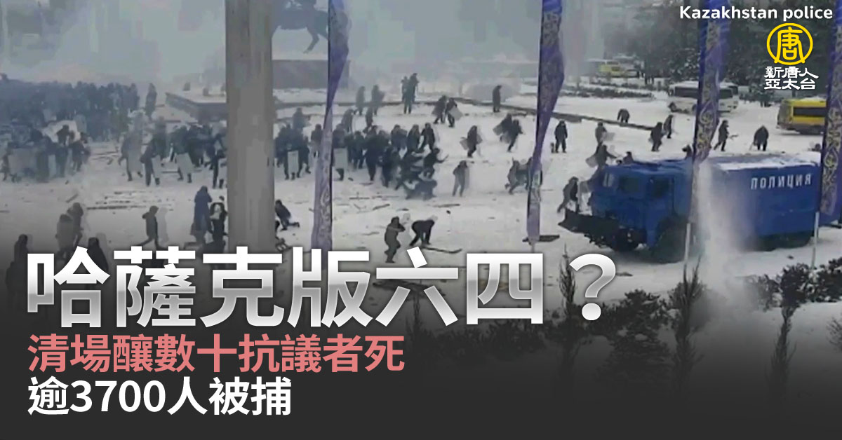 【新唐人亞太台 2022 年 01 月 07 日訊】接下來看到,哈薩克反政府示威,目前已經造成數十人死亡,3700多人被捕。哈薩克總統表示,他已經下令軍隊,不用警告就可以向民眾開火。有英國媒體把哈薩克的情景,與1989年中國的六四天安門事件,相提並論。