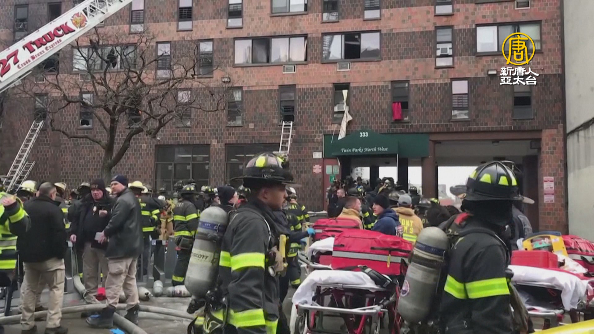 【新唐人亞太台 2022 年 01 月 10 日訊】美國紐約發生史上最嚴重的火災之一!布朗克斯區一間 19層樓公寓發生火災,造成至少 19人死亡,其中包括9名兒童,另外 63名傷者中,有32人身受重傷,有生命危險。消防隊是在獲報後3分鐘抵達現場,起火原因是大樓其中一間臥室的隨身電暖爐引起,大火燒毀房間,進而吞噬整座公寓。這座公寓已有 50年歷史,共有 120戶,建築沒有重大違規或接獲投訴。公寓住戶多為穆斯林,其中有許多是來自甘比亞的移民。紐約市長亞當斯表示,這對紐約市來說是一個可怕痛苦的時刻,目前將優先確保穆斯林葬禮受到尊重。