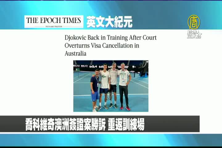 【新唐人亞太台 2022 年 01 月 11 日訊】首先來看到美國大紀元英文版報導:喬科維奇澳洲簽證案勝訴,重返訓練場。