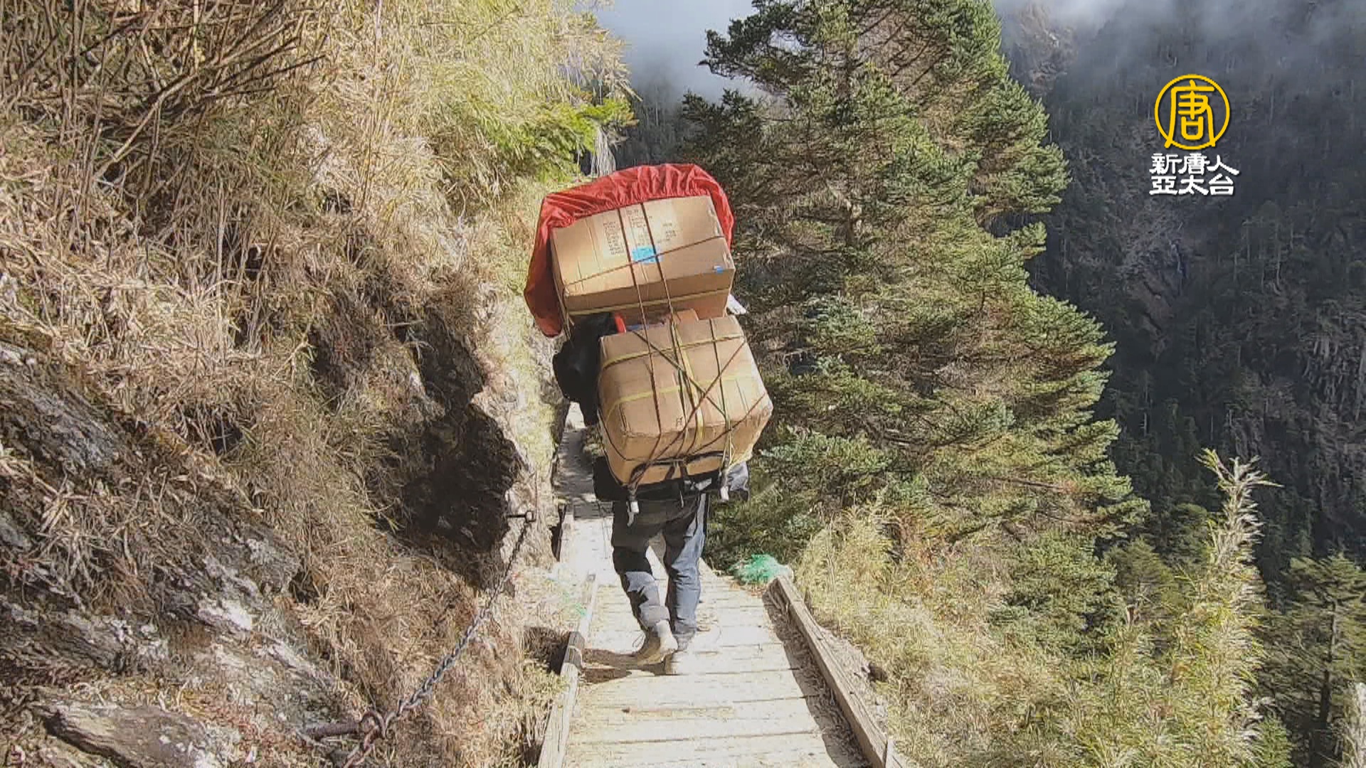 幾十公斤重、半個人高的背包,不只耗費大量體力,一不小心還可能摔下山谷,光是在後面看都捏把冷汗。而看在一般登山客眼裡,更是佩服。