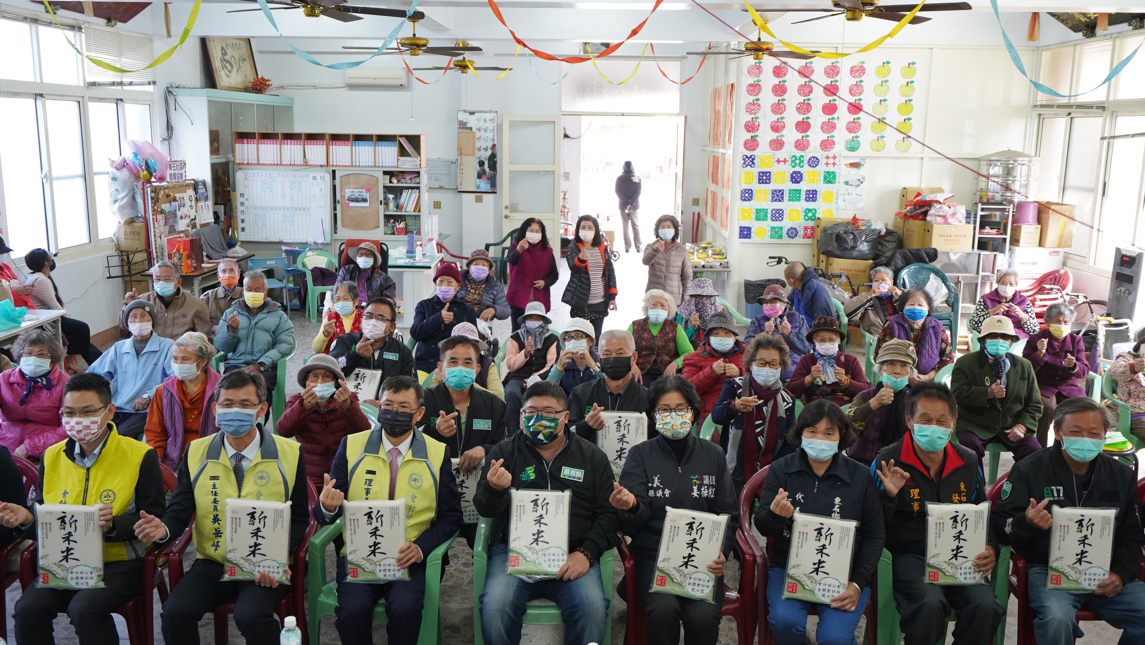 立委蔡易餘得知後,積極向會計師公會爭取物資1000包、2500公斤的白米,讓長輩在關懷據點吃得安心健康。會中蔡易餘也致贈公會感謝狀,表達最高謝意。
