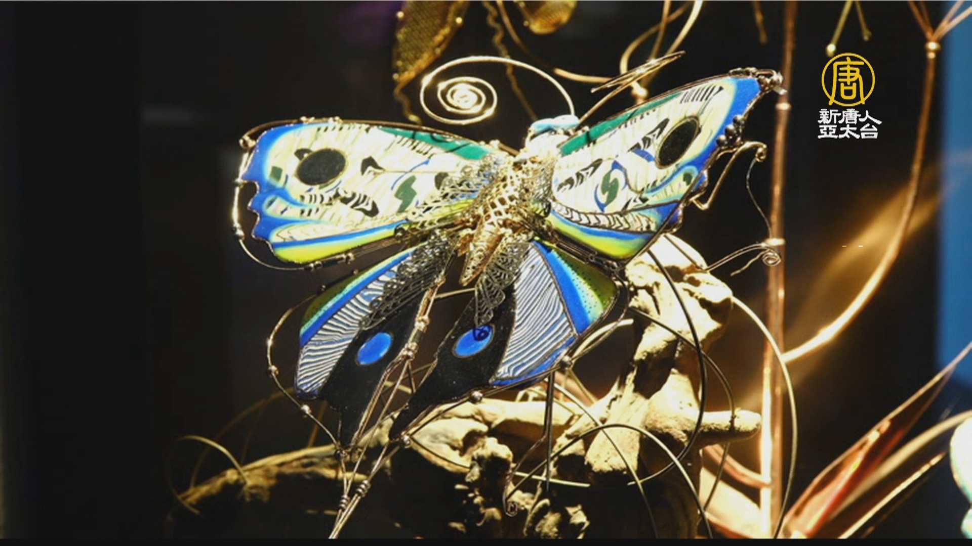 甲蟲、蝴蝶,眼前的昆蟲藝術創作,結合了機械、電焊、陶藝、金工和交趾陶等多種技法打造而成,外型栩栩如生;這些作品都出自旅美生態藝術家蔡爾平之手,獨創鮮艷貴氣的金工,取名「彩鑲瓷」。