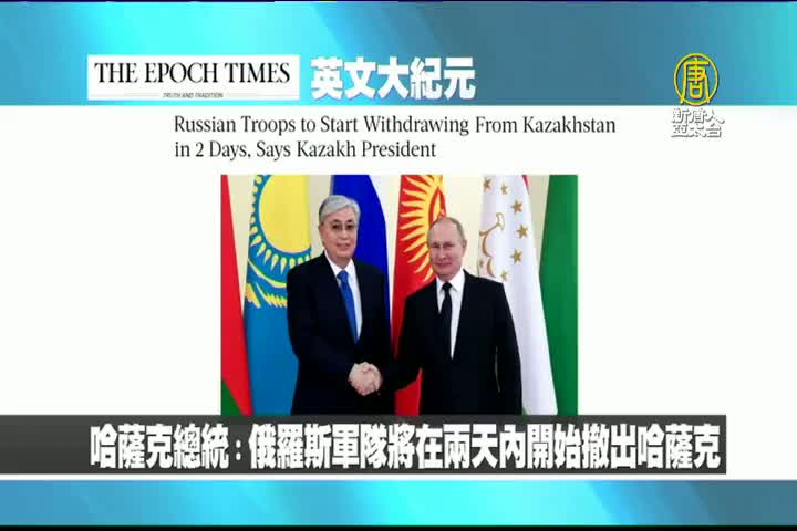【新唐人亞太台 2022 年 01 月 12 日訊】首先來看到美國大紀元英文版報導:哈薩克總統表示,俄羅斯軍隊將在兩天內開始撤出哈薩克。