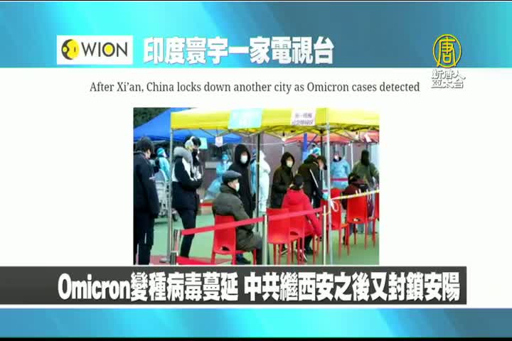 【新唐人亞太台 2022 年 01 月 12 日訊】最後是印度寰宇一家電視台報導:Omicron變種病毒蔓延,中共繼封鎖西安之後,又封鎖河南省安陽市,並對天津實施限制措施。