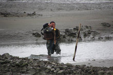 F-16V戰機11日墜海,飛行官陳奕仍失聯。鄭姓漁民 13日上午向軍方通報,在事發地點附近海堤岸邊,發 現疑似人類腿骨,軍方已到達發現地點採檢送鑑定。 (圖/鄭姓漁民提供)