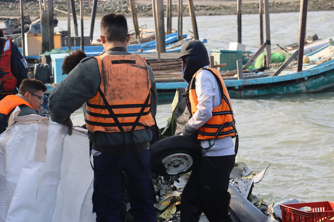 下午3時40分,2艘膠筏分別載運2大塊軍機殘骸及輪胎,駛回岸邊卸貨,其中1塊殘骸還印有國徽,須由10多名軍方人員搬運,另有許多碎裂殘骸,可見軍機墜海時撞擊力道驚人。岸邊吊車在吊掛軍機殘骸時,還一度發生因承載過重,造成鋼索斷裂的插曲。