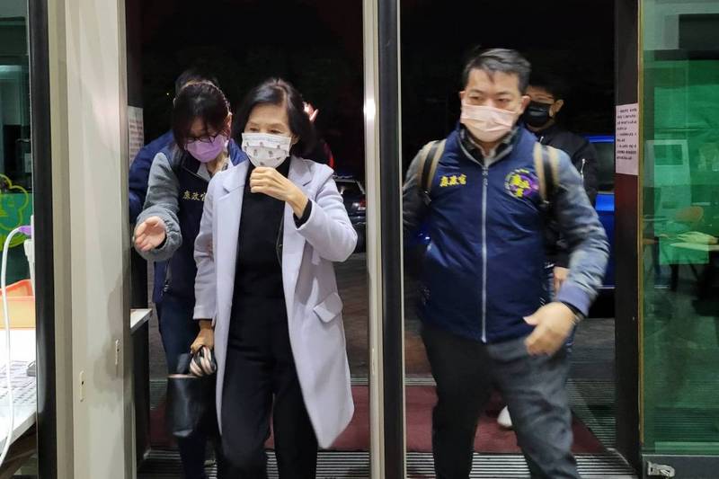 宜蘭縣長林姿妙(前左)因案遭約談,檢方複訊後14日上午無保請回。圖為林姿妙14日凌晨抵達宜蘭地方檢察署接受偵訊。(圖/中央社)