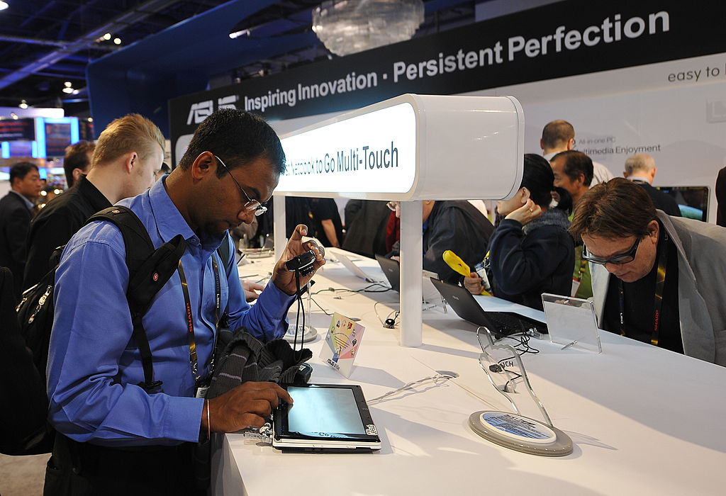 電腦品牌廠華碩今天宣布獲得美國消費性電子展創新獎(CES Innovation Awards)20項大獎,一舉刷新紀錄,得獎產品涵蓋電競筆電、電競主機板、可攜式螢幕、路由器等類別。圖為華碩參展資料照。(圖/GettyImages)