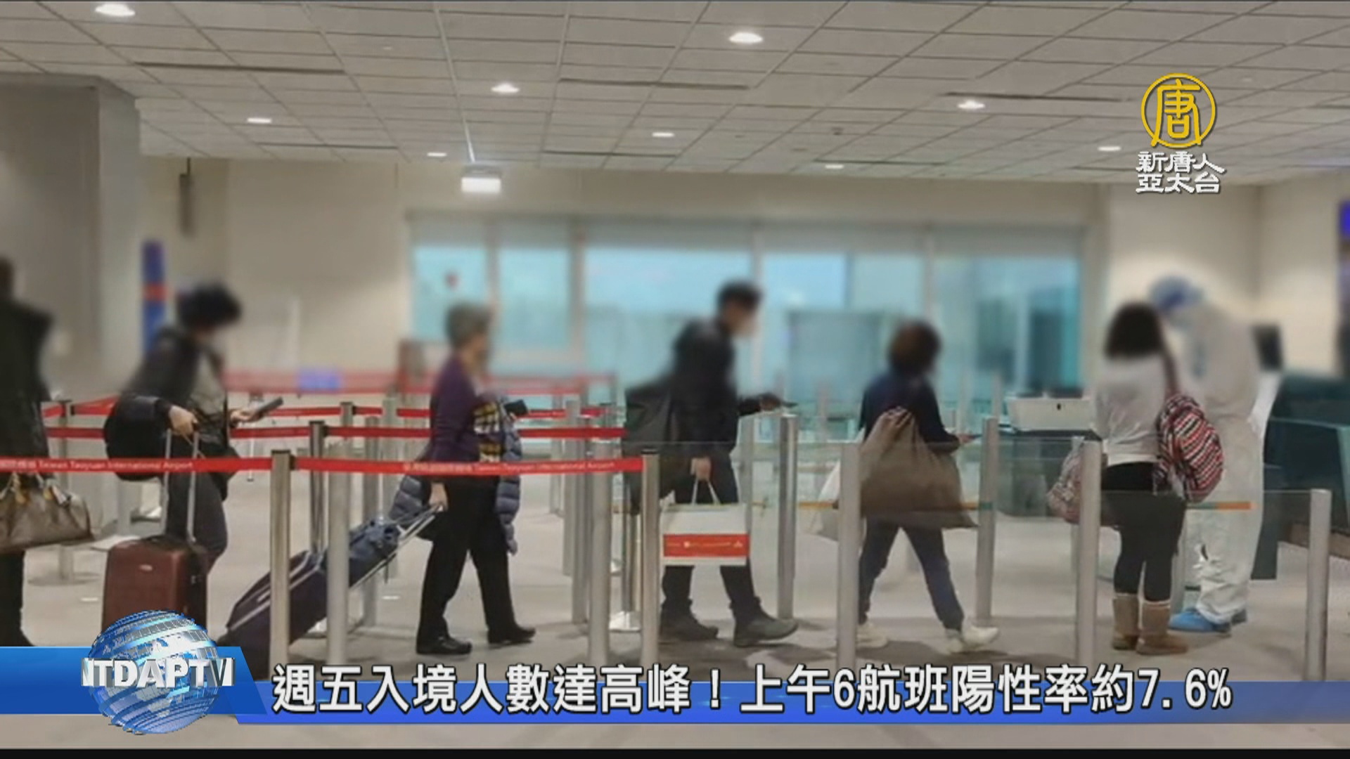 【新唐人亞太台 2022 年 01 月 14 日訊】Omicron來勢洶洶,全台全面備戰!週五(14日)入境人數來到最高峰,預計入境人數達4200人,其中長程航班約700多名旅客,要接受落地採檢,上午6個航班382名旅客,驗出29人染疫,陽性率約7.6%。統計新制上路以來,總共做了1837位旅客、139人確診,陽性率7.59%,今天桃機也增加1倍人力,全力守住國門。
