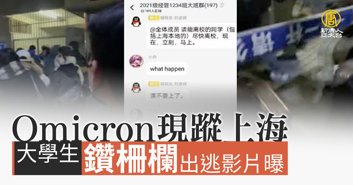 【新唐人亞太台 2022 年 01 月 15 日訊】中國疫情持續延燒,上海也已經淪陷,多所學校傳出停課甚至封校,網路上還傳出上海大學學生側拍逃出校園的影片,還有學校輔導員和導師要求學生迅速離校的對話截圖,在一夕之間登上熱搜。