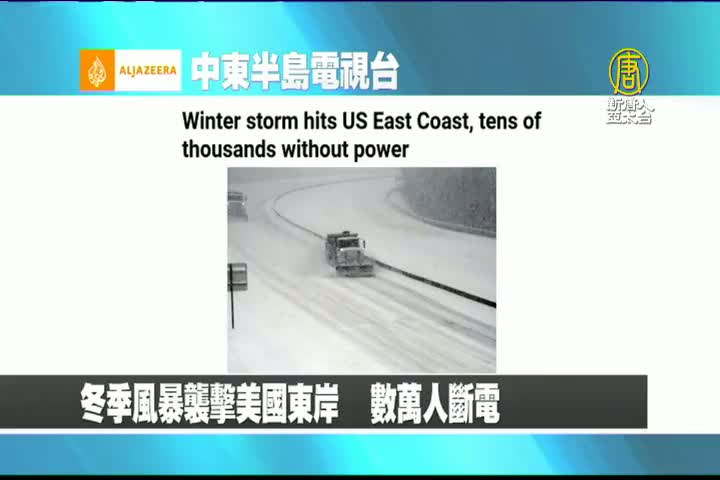 【新唐人亞太台 2022 年 01 月 18 日訊】來看到中東半島電視台報導:冬季風暴襲擊美國東岸,導致至少13萬人斷電,從密西西比州到緬因州都發布了警告。