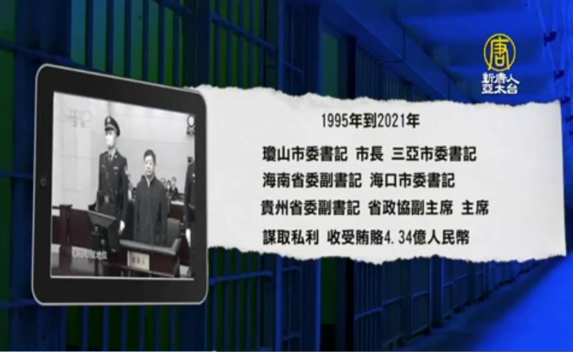 【新唐人亞太台 2022 年 01 月 18 日訊】中共天津第一中級法院,週一通報,貴州省前政協主席 王富玉被判死刑,緩期兩年。
