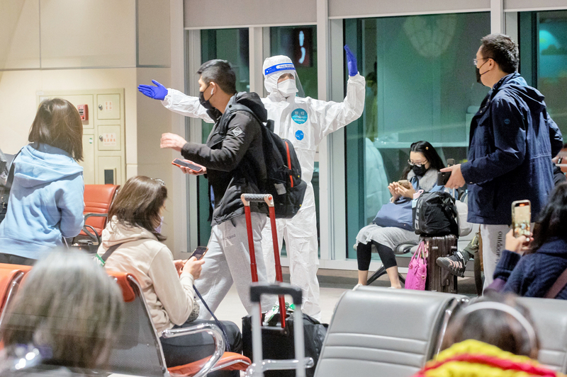 因應機場防疫計程車、防疫人員染疫,中央流行疫情指揮中心指揮官陳時中今天宣布,落地採檢範圍將從長程航班擴大至短程航班,這兩天將陸續增加落地採檢比例。示意圖。(圖/中央社)