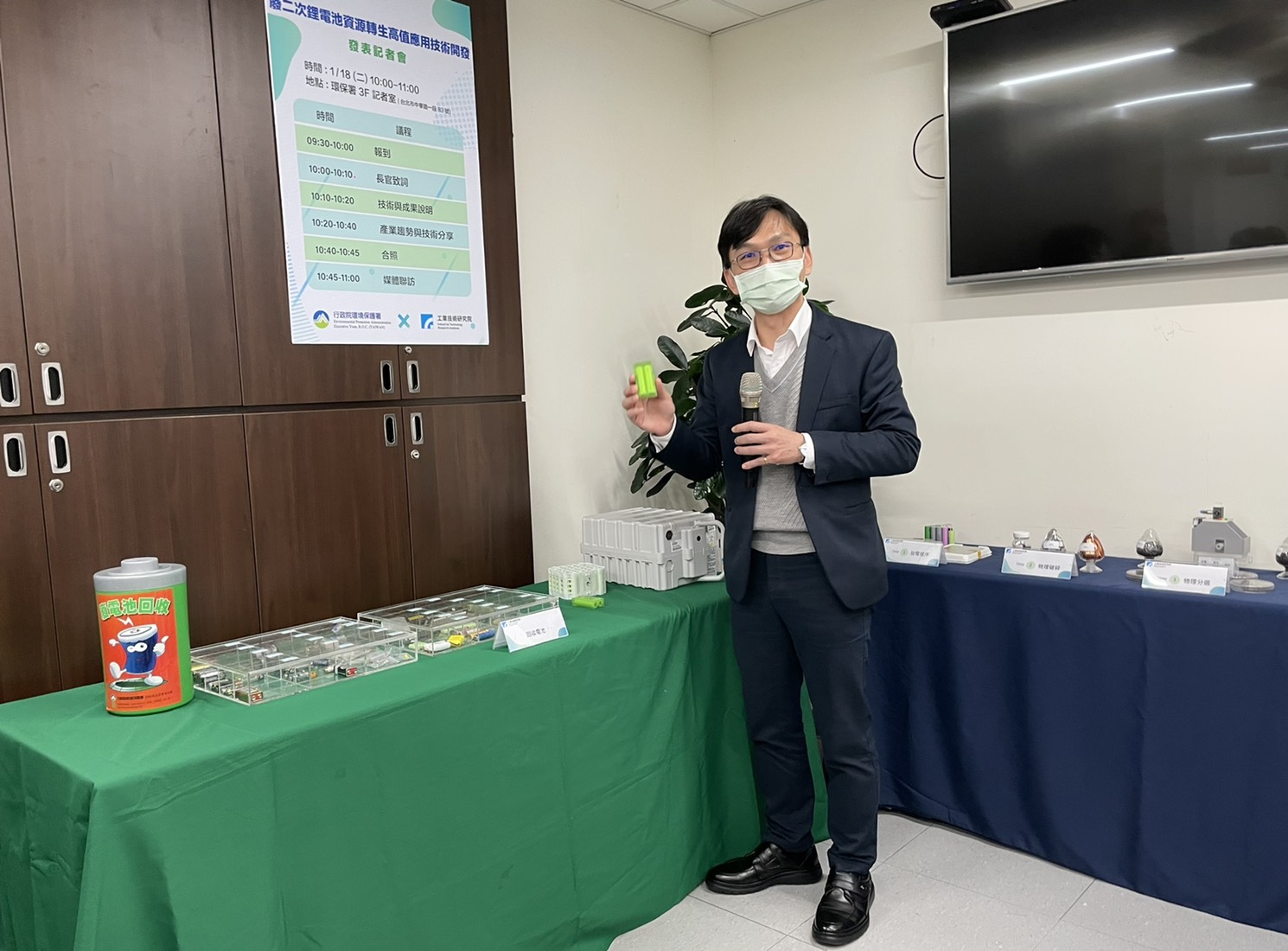 行政院環境保護署今天舉辦「環保署、工研院研究有成 加值二次鋰電池處理技術」記者會。環保署回收管理基金管理會執行秘書王嶽斌表示,所謂二次鋰電池就是常見的充電電池,在手機、家電或是交通運具上都會使用;透過與工研院合作,希望提取廢電池中的鈷、鎳等原料、在台灣循環利用。