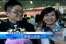 2011-05-23 22:59:27說到天氣熱容易出油,最煩惱的人大概就是準新娘了吧?21號下午,大高雄第一屆市民集團婚禮在捷運美麗島站浪漫登場,有100對新人在光之穹頂完成終身大事。市長陳菊證婚致詞時,鼓勵新人們多生育,還說:三個小孩恰恰好。