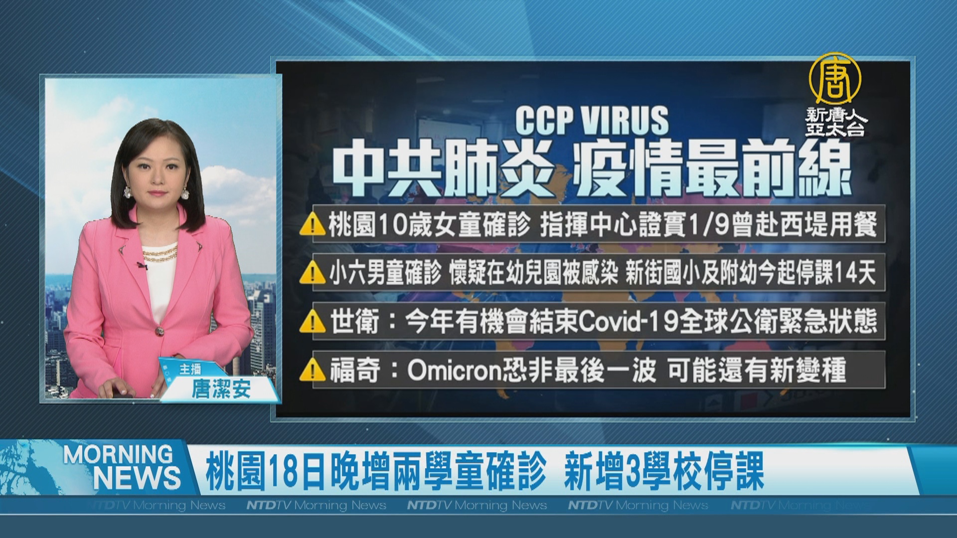 【新唐人亞太台 2022 年 01 月 19 日訊】桃園昨晚(18日)增加兩位孩童案例,1位10歲女童確診,指揮中心證實1月9日曾赴西堤用餐。