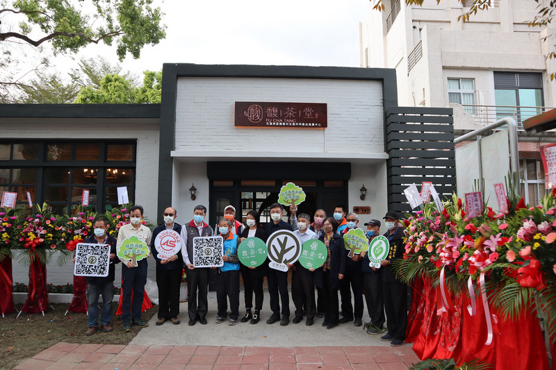林務局與富里鄉農會合作的「花蓮南區國產材及農林特產品推廣中心-馥茶堂暨農民直銷站」19日舉行開幕儀式,盼吸引遊客到訪消費,帶動地方經濟。(圖/中央社)
