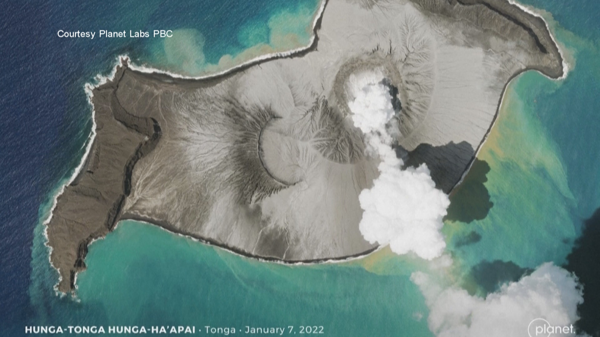 這座火山於當地時間週五首次噴發,週六下午二次噴發。東加地質局報告稱,火山噴出的氣體、煙霧和火山灰噴到20公里外的高空。