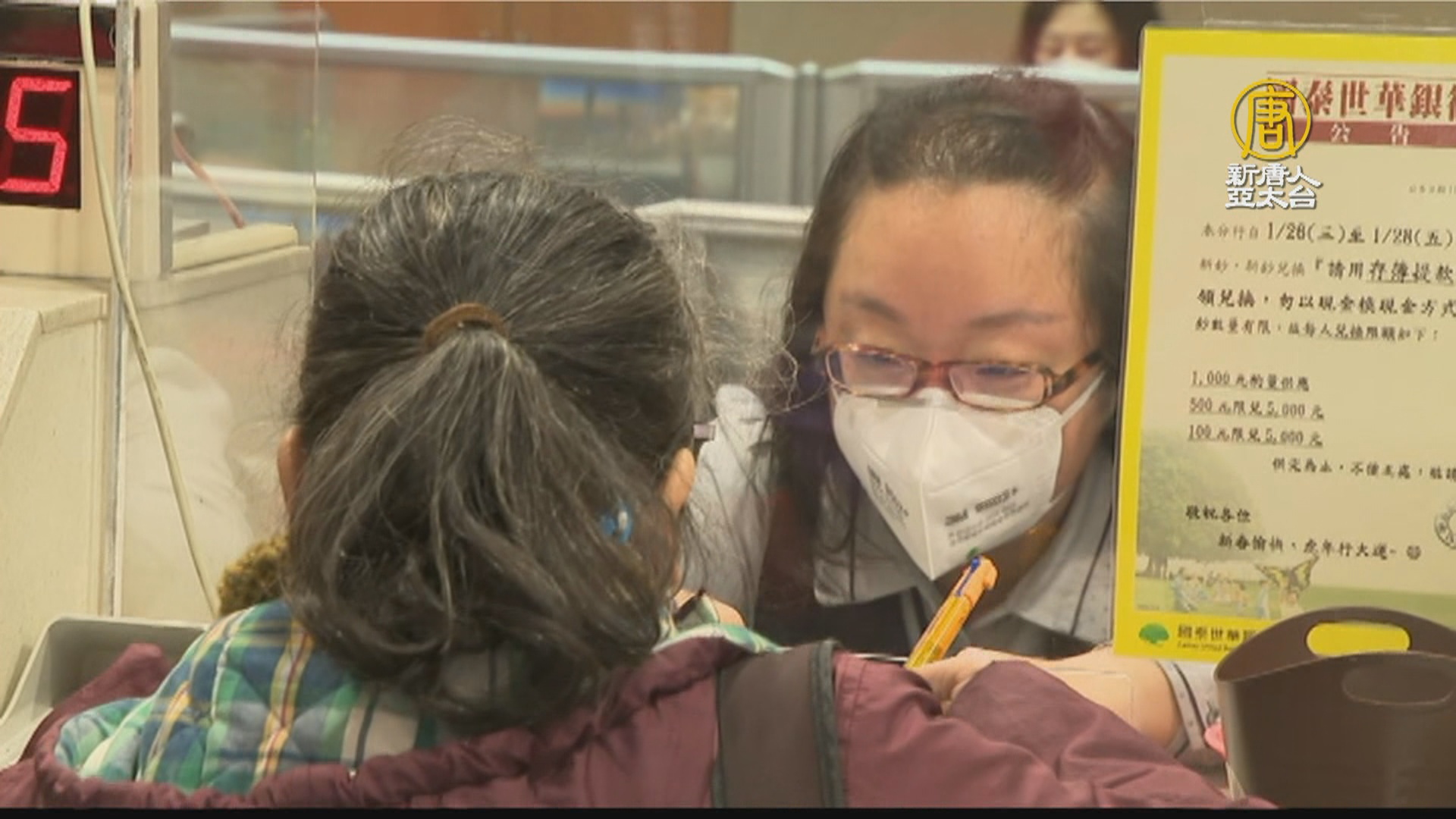 【新唐人亞太台 2022 年 01 月 20 日訊】桃園疫情延燒,加上正逢民眾年前換新鈔之際,讓各家銀行不敢大意,將防疫措施升級,除了櫃台有架設隔板外,銀行員還特別戴上N95口罩、面罩及手套,而爆出群聚感染的聯邦銀行中壢健行分行,原本20日要重新開業,但因為申請不及,延到(24日)下週一重開。