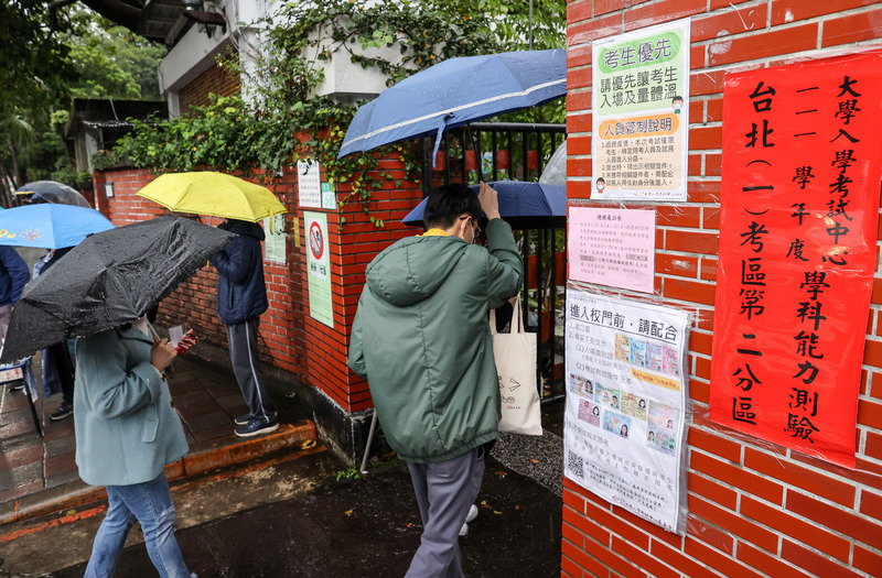 111學年度學科能力測驗21日登場,第一天考科為數學A、自然;考生進入校門前須配合戴口罩、量體溫。(圖/中央社)
