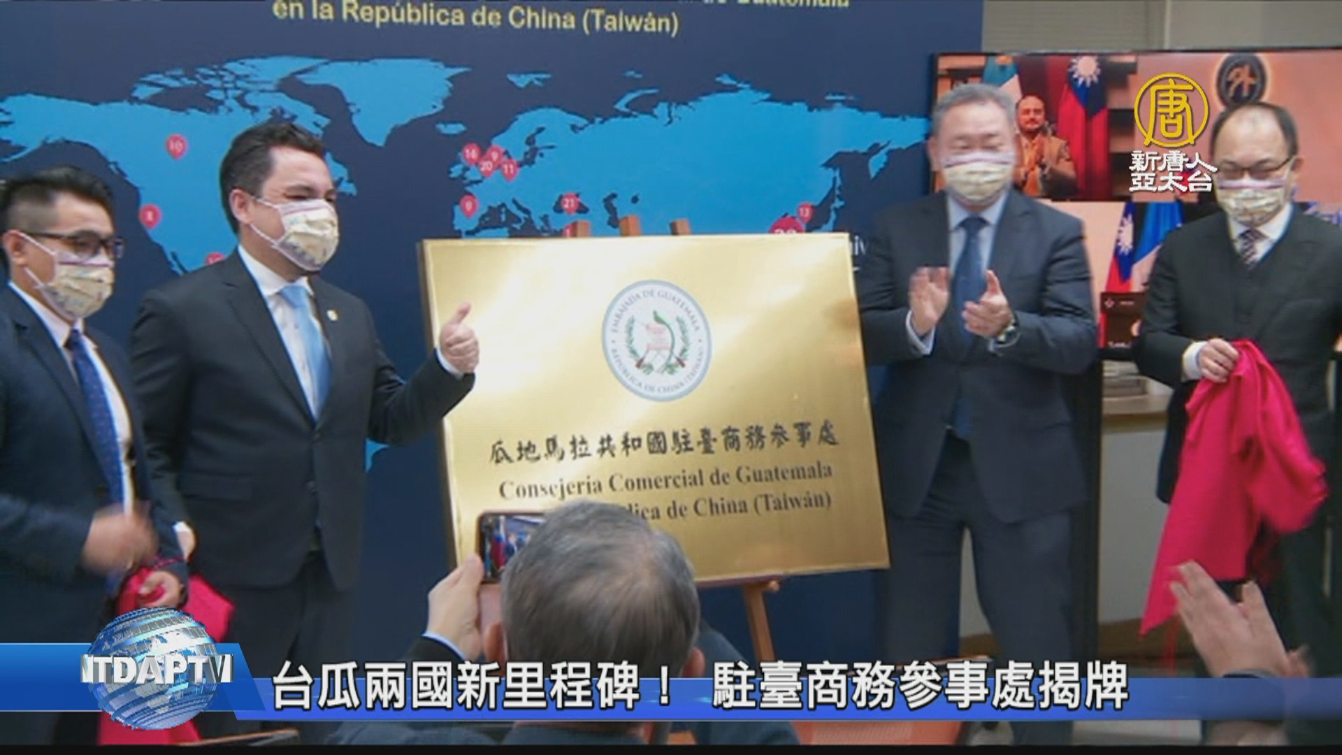【新唐人亞太台 2022 年 01 月 21 日訊】好的,來看到,瓜地馬拉共和國駐臺商務參事處,今天(21日)上午舉行揭牌儀式,瓜地馬拉外長布羅洛以及中華民國外長吳釗燮,都以視訊方式參與。吳釗燮表示,商務參事處的設立,是兩國來往的新里程碑。也期待未來雙方貿易投資和旅遊,都能取得豐碩成果。外交部次長俞大㵢則在受訪時表示,希望藉由商務參事處的設立,讓更多台灣人認識瓜地馬拉。