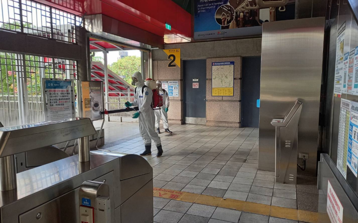 1名桃園西堤群聚確診者曾到台北市大安區、大同區診所就醫,北市府今天表示,1名75歲阿嬤經採檢確診,阿嬤的2個孫子就讀學校已採檢175名師生,目前都是陰性。圖為化學兵在台北捷運站附近加強消毒資料照。(圖/翻攝自台北市衛生局)