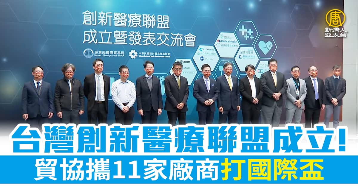 【新唐人亞太台 2022 年 01 月 21 日訊】看準創新醫療的全球市場潛力,經濟部國際貿易局、外貿協會今天(21日)成立創新醫療聯盟。串聯台灣創新醫療生態系,將從市場、資金、行銷等三方面,協助台灣創新醫療產業,接軌國際市場。