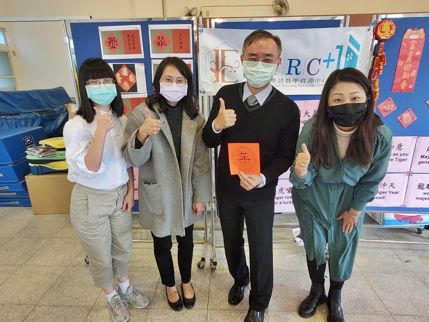 為了讓來自美國、加拿大、澳洲、英國、菲律賓、南非等10多位外籍老師,體驗華人的過年文化,英資中心團隊提早準備「毛筆、春聯、硯台、墨條」,並蒐集各式「虎」年有關的中英對照成語、賀歲對聯,邀請中外籍教師體驗寫春聯;還幫他們事先刻好中文姓名的篆書印章,可以落款使用。