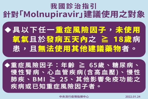 20220124-我國確診指引針對molnupiravir建議使用之對象