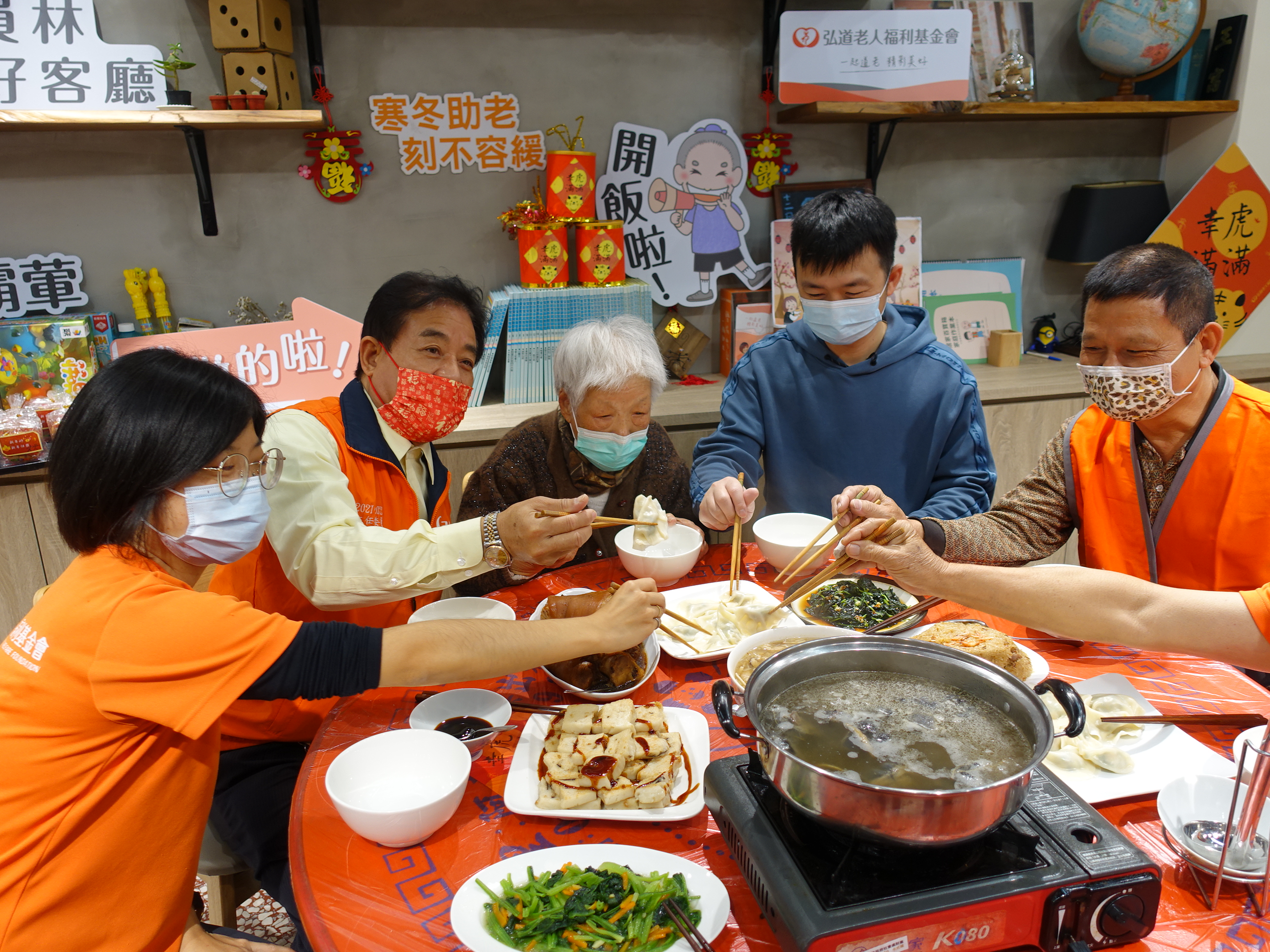 1月24日、除夕夜前一周,弘道彰化服務處邀約97歲高齡獨居的管奶奶,到住家附近的「員林好客廳」與弘道社工、志工及在地愛心企業一同「圍爐」,奶奶還秀出好手藝,擔任客座「管主廚」,憑著記憶包出家鄉味的餃子,並現場傳授包餃子的技法,與大家溫馨圍爐,分享過年的回憶。