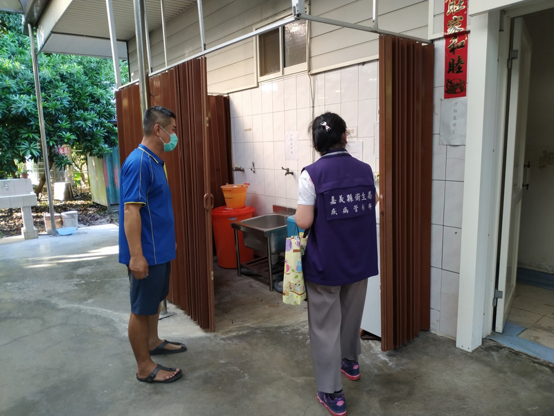 因應COVID-19疫情升溫,嘉義縣依中央公告醫院及住宿式機構全面禁探視,陪病限1人;衛生局近日也前往長期照護機構、失智據點、住宿型機構等實地查核,提醒加強環境清消及訪客管理。(圖/嘉義縣政府提供)