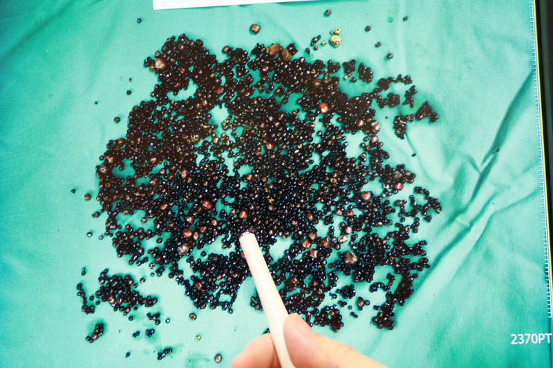 余政展表示,一般膽結石10顆、20顆就很多了,這位病人膽結石多達近5000顆且粒粒分明,十分罕見,膽結石有機會掉入膽管,只要1顆掉入膽管或塞住膽囊開口,都可能造成膽囊炎、膽管炎、胰臟炎,甚至膽囊破掉變成腹膜炎。