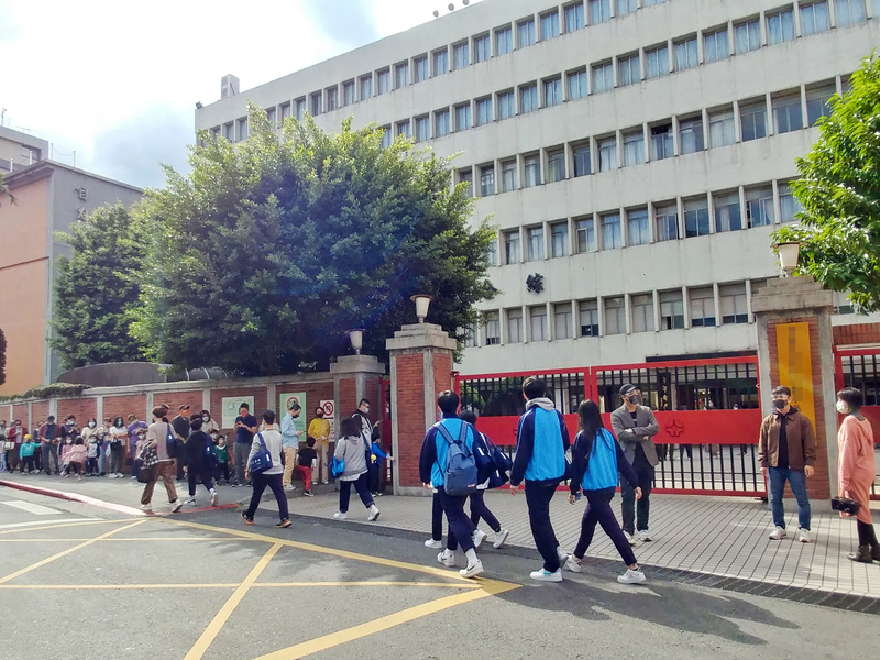 台北市松山區某幼兒園有老師確診,北市教育局已要求園方即日起停課14天,並協助衛生局替幼兒園約180名師生造冊、疫調,26日派採檢車進駐,幼兒園師生、學童及家長等候篩檢。(圖/中央社)