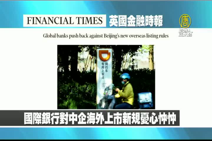 【新唐人亞太台 2022 年 01 月 27 日訊】來看到英國金融時報報導:國際銀行表示,中國企業海外上市新規框架不清晰,可能加大監管風險和成本。
