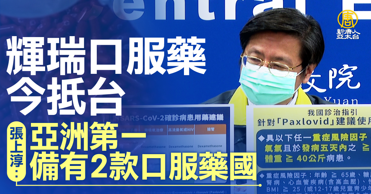 指揮中心宣布,周三中午首批輝瑞口服藥物Paxlovid,3200人份抵達台灣。專家小組召集人張上淳表示,台灣是亞洲第二國取得輝瑞口服藥物,也是亞洲第二國取得默沙東口服藥,更是亞洲第一個國家同時備有兩種口服藥。