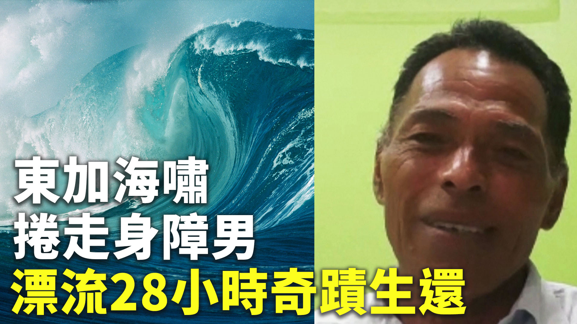 【新唐人亞太台 2022 年 01 月 27 日訊】南太平洋島國東加王國的海底火山於1月15日爆發並引發致命海嘯。當地一名行動不便的男子遭海浪捲入大海,並在海上漂流28小時後,竟然奇蹟般地生還。