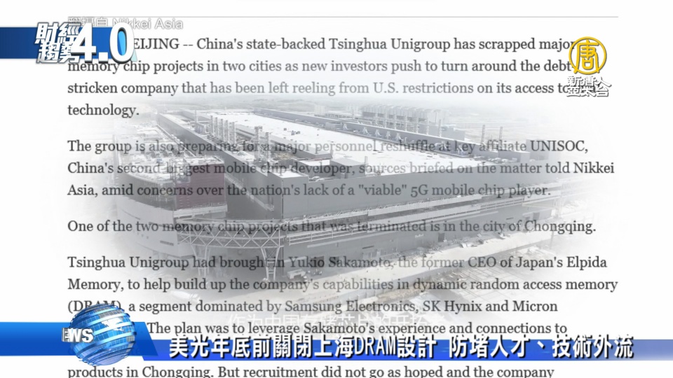 【新唐人亞太台 2022 年 01 月 29 日訊】歡迎回來,根據路透社報導,美國記憶體大廠美光證實,今年底前,將關閉中國上海的DRAM記憶體設計業務,有市場分析師認為,這是為了防止人才與技術流向中國。