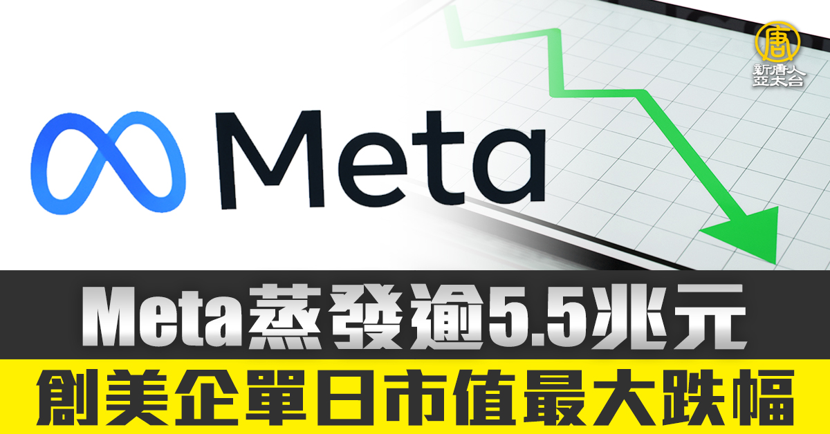【新唐人亞太台 2022 年 02 月 04 日訊】社群網站臉書(Facebook)母公司Meta股價今天暴跌26%,創下美國企業市值單日最大跌幅。這家社媒巨擘稍早公布了令人沮喪的財測,認為問題出在愈來愈激烈的競爭。