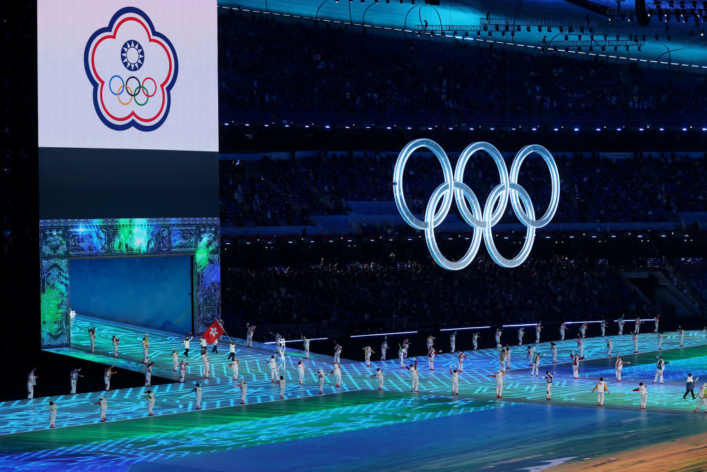 2022年北京冬季奧運4日晚間舉行開幕式,台灣代表團進場時,現場大會廣播介紹為「中華台北」,不過中共官媒中央電視台轉播時則稱「中國台北」,日本NHK轉播時直稱台灣。(圖/GettyImages)