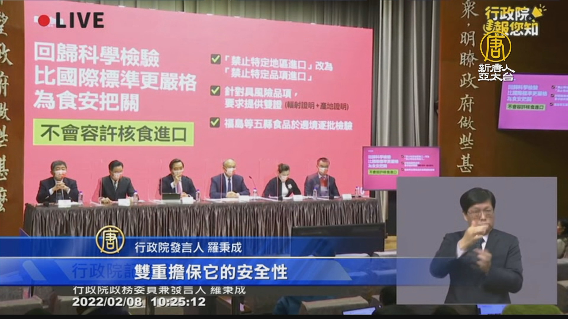 行政院發言人 羅秉成:「日本也要驗合格,我們這邊也要再驗一次合格,雙重擔保它的安全性,所以在這種情形底下,透過這樣的配套,我們跨出一步,跟國際接軌,放寬相關的管制,但也加嚴了相關的檢驗措施。」