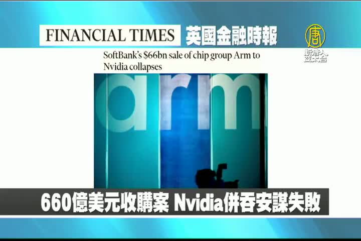 【新唐人亞太台 2022 年 02 月 09 日訊】接著是英國金融時報的報導:660億美元收購案,Nvidia併吞安謀失敗。